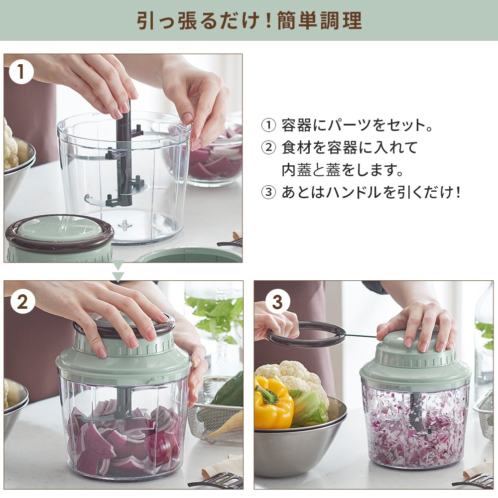 ハンディチョッパー 大容量 K-HC11 トフィー 1.5L フードプロセッサー みじん切り 泡立て 手動ブレンダー チョッパー スライサー フードチョッパー Toffy 公式