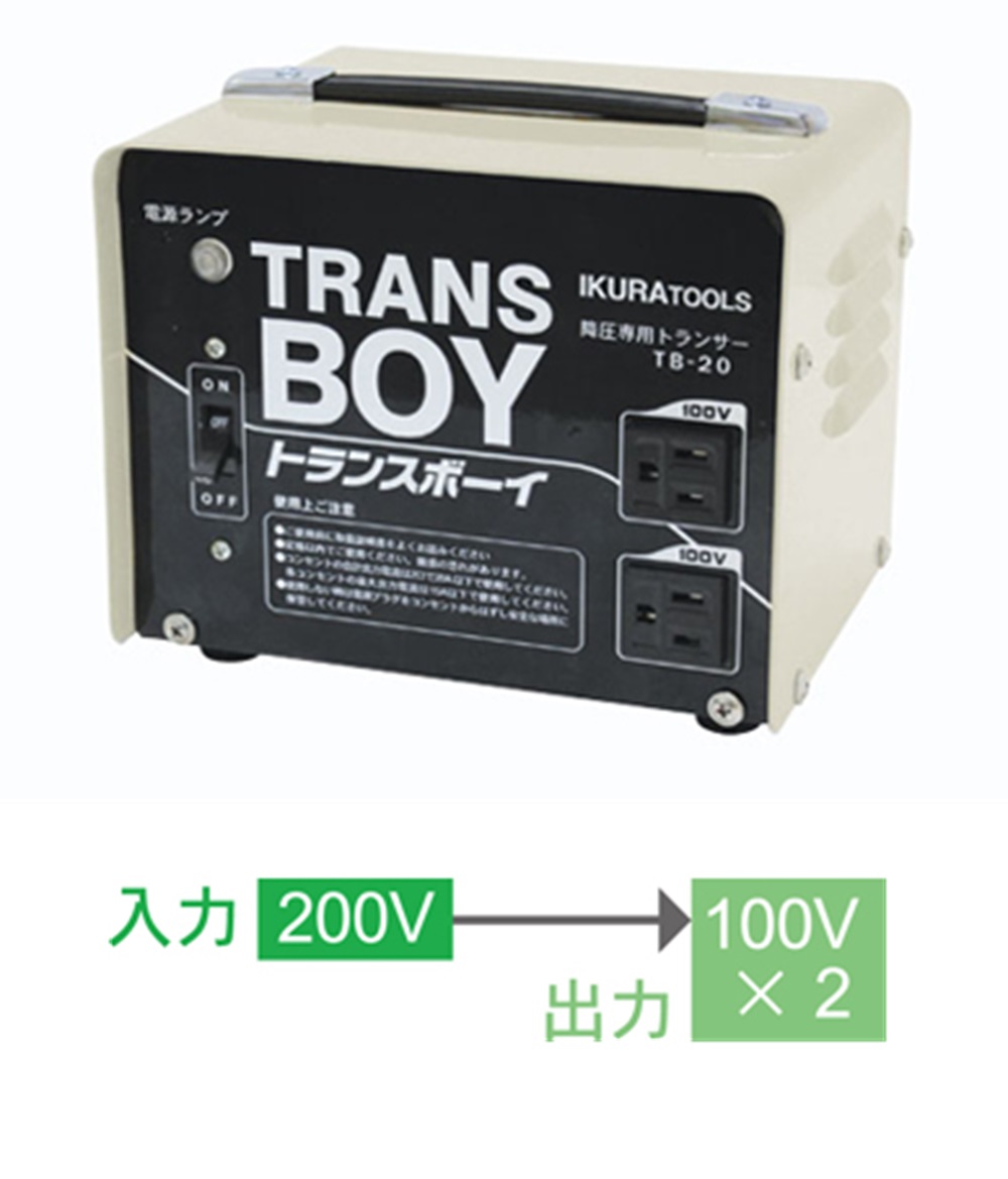 育良精機 ポータブル変圧器 トランスボーイ(降圧専用) TB-20