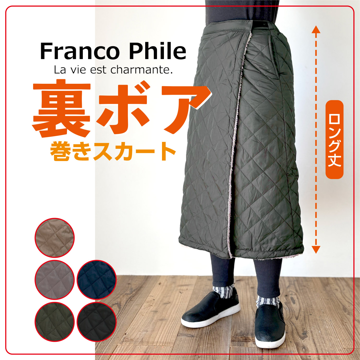 【公式・直販】 防寒 巻きスカート お花見 ひざ掛け ロング丈 ブランケット 裏ボア キルティング ラップスカート キャンプ トーマセンイ Franco Phile 73407