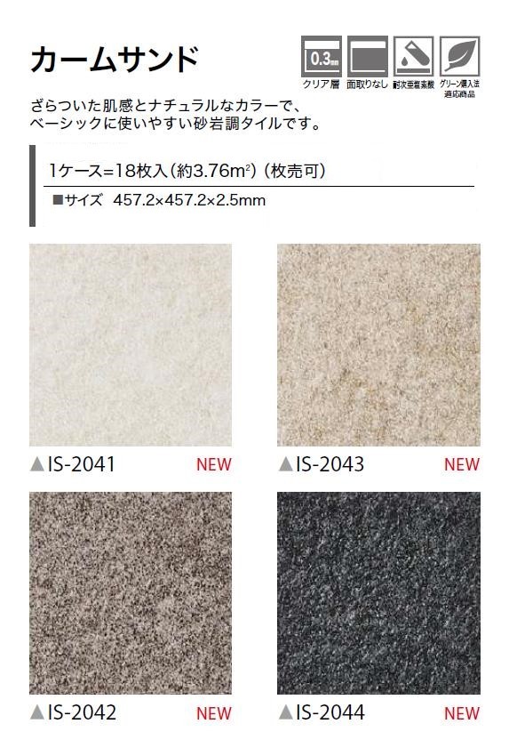 【ケース売】ストーン床材 石目 カームサンド 457.2×457.2×2.5mm IS2041 IS2042 IS2043 IS2044 サンゲツ STONE 「SANGETSU FLOORTILE 2023-2026」