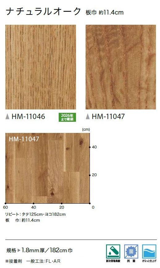クッションフロア 1.8mm厚フロア 2色 182cm巾 ナチュラルオーク 木目調 塩化ビニル床シート 土足対応 サンゲツ Hフロア sangetsu H FLOOR