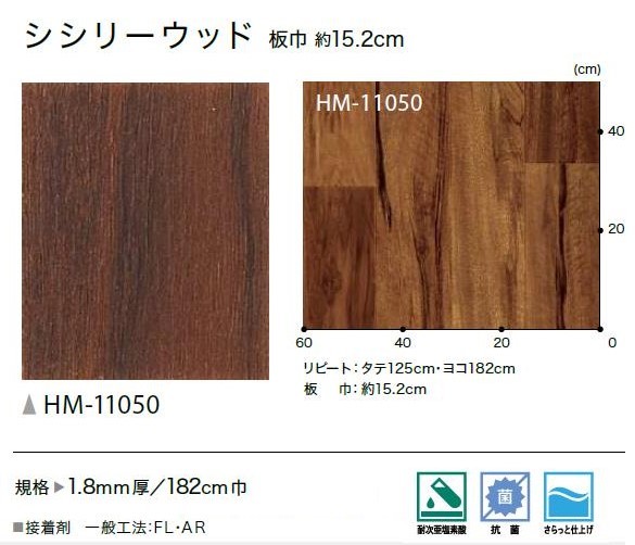 クッションフロア 1.8mm厚フロア 1色 182cm巾 シシリーウッド 木目調 塩化ビニル床シート 土足対応 サンゲツ Hフロア sangetsu H FLOOR