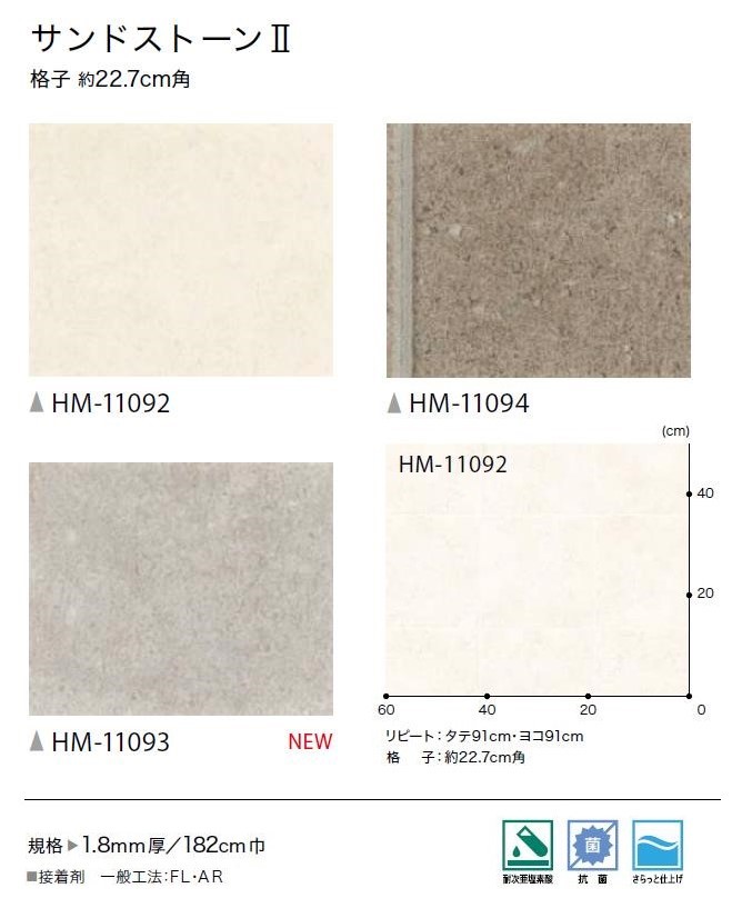 クッションフロア 1.8mm厚フロア 3色 182cm巾 サンドストーンII ストーン 塩化ビニル床シート 土足対応 サンゲツ Hフロア sangetsu H FLOOR