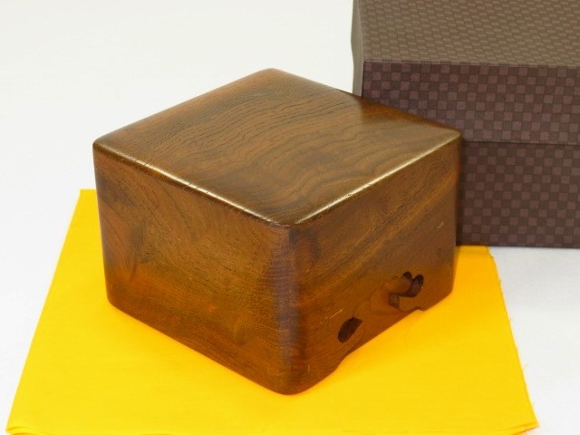高橋徹男(高橋工芸)。九州宮崎の上手です。美術駒箱・駒台等得意としています。今回は隅丸(すみまる)。隅丸は手間も材料も、通常の角箱の二倍ほどかかります。師の作品中最上級品です。新品です。