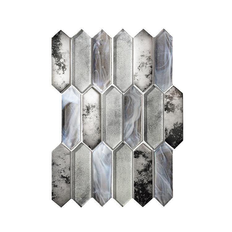 クリア、ラスター、メタルを組み合わせた変形六角形のガラスタイルです。