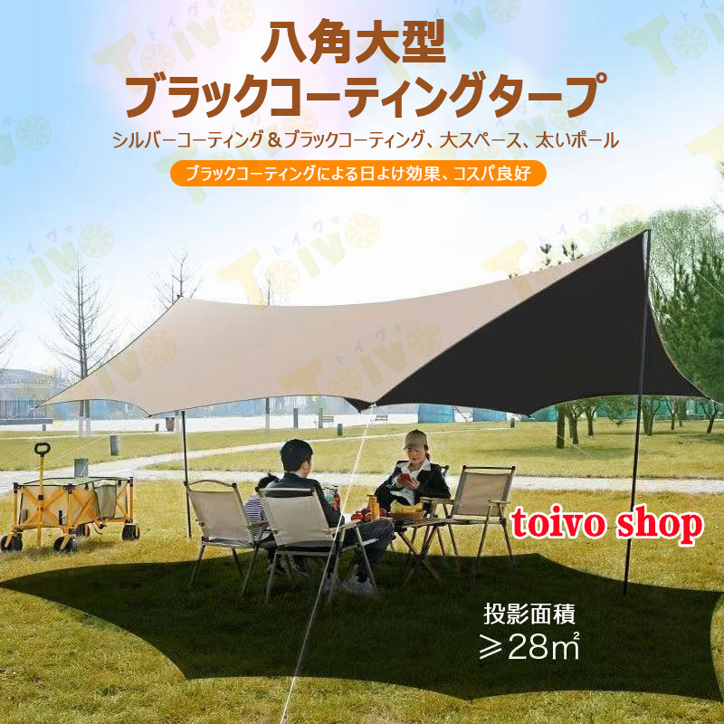 大型タープ 大スペース ブラックコーティングタープ 10人以上使用可能 簡単収納 日焼け防止 断熱効果 広い面積 四季対応 雨対策 耐久 アウトドア キャンプ