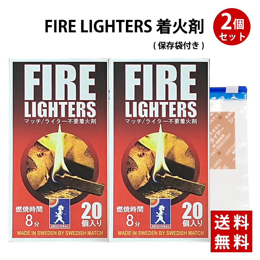 FIRE LIGHTERS ファイヤーライターズ 2箱 マッチ 着火剤 チャック付袋 乾燥剤付き 火起こし 1箱20本入り