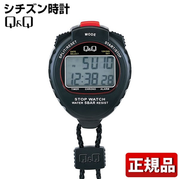 ストップウォッチ シチズン Q&Q キューアンドキュー HS44-001 CITIZEN 国内正規品 メンズ レディース 黒 ブラック 赤 レッド
