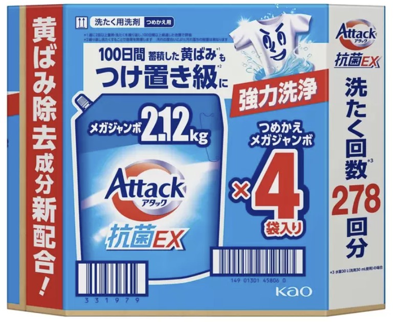 アタック 抗菌EX 衣料用洗剤 2120g 4個 詰め替え用 69601 コストコ 洗濯 花王 ランドリー 液体 防カビ ウイルス除去