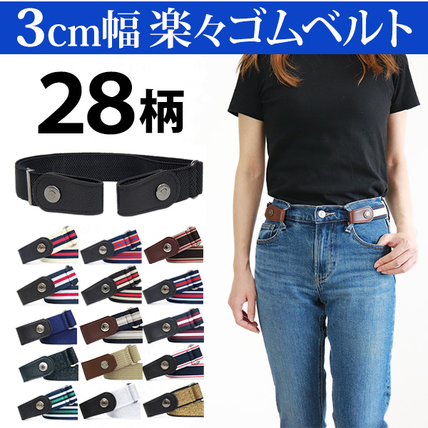ベルト レディース ゴムベルト ゴム 約3cm幅 伸びる ストレッチ おしゃれ 可愛い バックルなし サイズ無段階調節 男女兼用 メンズ ポイント消化