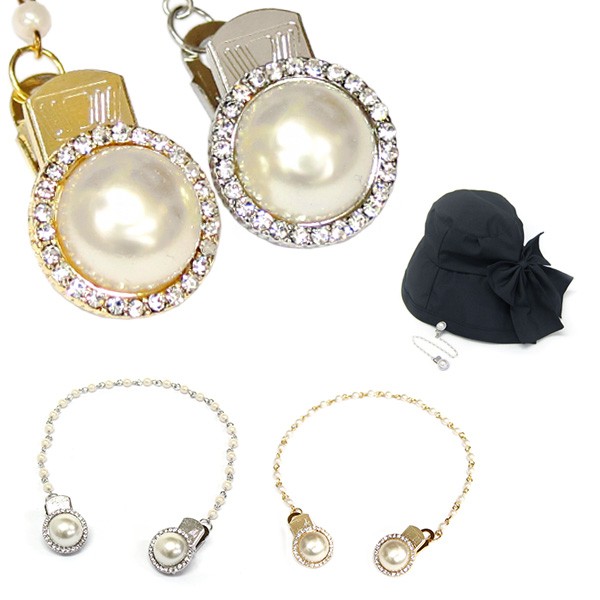 帽子クリップ おしゃれ 落下防止 大粒パール 樹脂 シルバー色 ハット アクセサリー (151-12)
