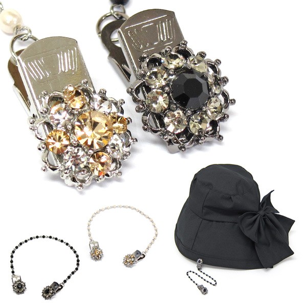 帽子クリップ おしゃれ ラインストーン 花モチーフ クローム色 シルバー色 ハット アクセサリー (151-15)