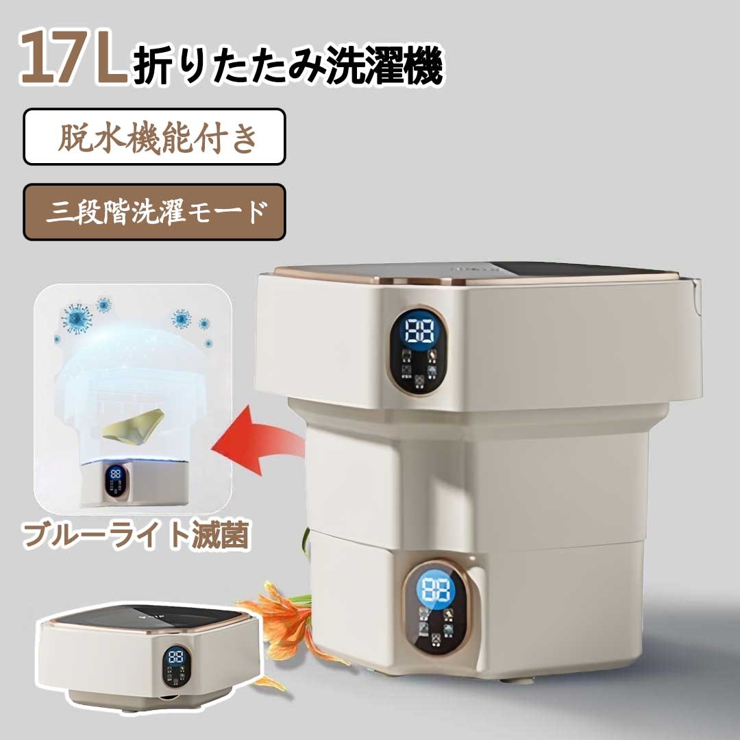 洗濯機 小型洗濯機 一人用洗濯機 17L ブルーライト滅菌 折りたたみ 持ち運び 脱水付き タイマー バケツ洗濯機 野球 ユニフォーム 一人暮らし 静か ミニ洗濯機