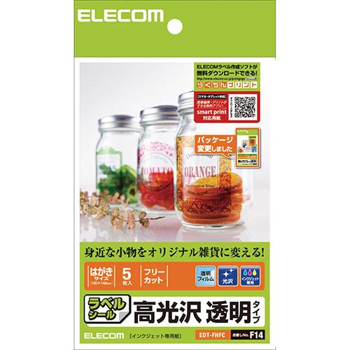 エレコム(ELECOM) EDT-FHFC フイルムラベル 透明 光沢 はがきサイズ フリーカット 5枚