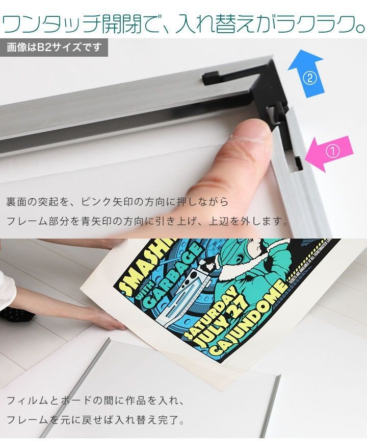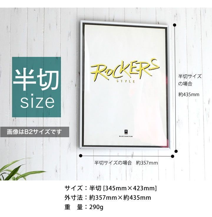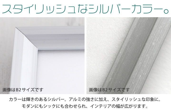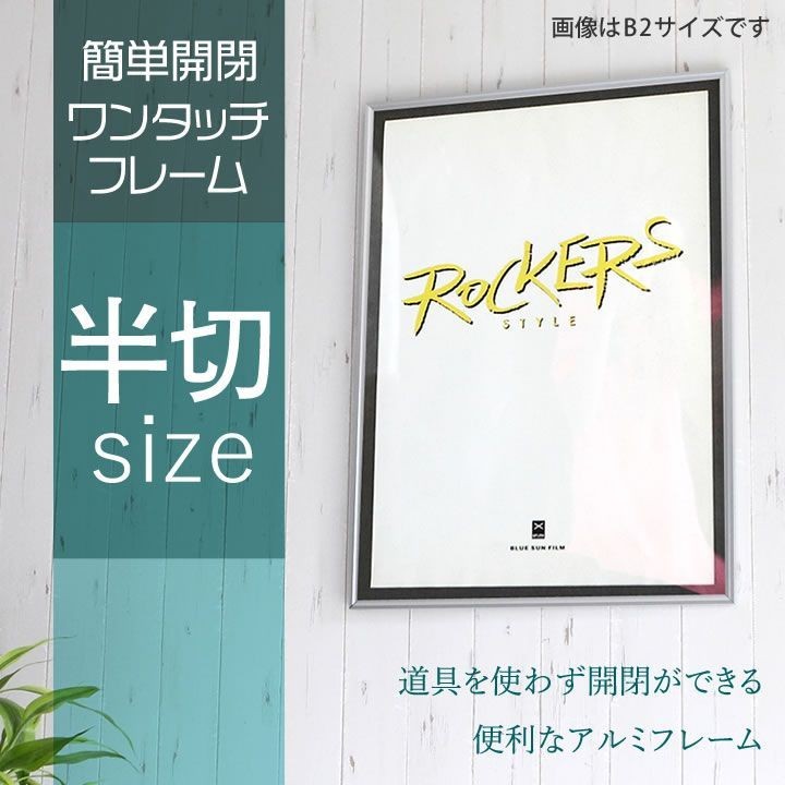 半切サイズ 345×423mm 額縁 ポスターフレーム パネル ワンタッチで開閉出来る 便利な機能 ポスター入れ ポスター入れ アルミ シルバー