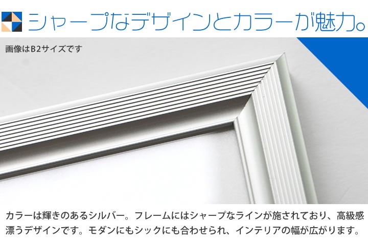 A2サイズ 420×594mm 額縁 ポスターフレーム パネル 高級かつ重厚感のあるしっかりとしたフレーム ポスター入れ ポスター入れ アルミ シルバー シル