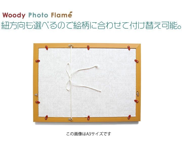 *送料を含んだ価格になっております。アート作品も映えるサイズ。大好きなアーティストのポスターや、お気に入りのイラスト作品などを飾っても映えて、自分好みのお部屋へと変身させます。風景写真などを飾るとお部屋に奥行が生まれ、拡張効果にもつながります。タテヨコ自在。フレームは縦型にしても使えます。中に入れるアイテムによって向きを変えられるので便利。必要なのは飾る写真やアート作品だけ。必要な吊るし紐や、額縁の紐通しは付属品として付け添えてあります。裏側には向きのが分かりやすい色味のトンボ止めと、しっかりした吊り下げ金具が付いています。付属している吊り下げ用の紐。シンプルで扱いやすい。紐方向も選べるので絵柄 に合わせて付け替え可能。中敷きやフィルム、背当てもセット内容です。組合せ自由、中に入る作品によっては中敷きをそのまま使ったり、取り外したりと自由自在です。優しげな風合いのフレーム。カラーは綺麗な色を取り揃えました。