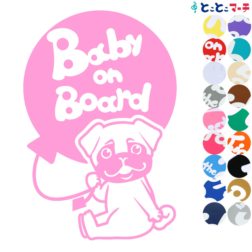 Baby on board犬 パグ風船2戌 干支 動物 ステッカーorマグネットが選べる 車 子供が乗っています ベビー イン