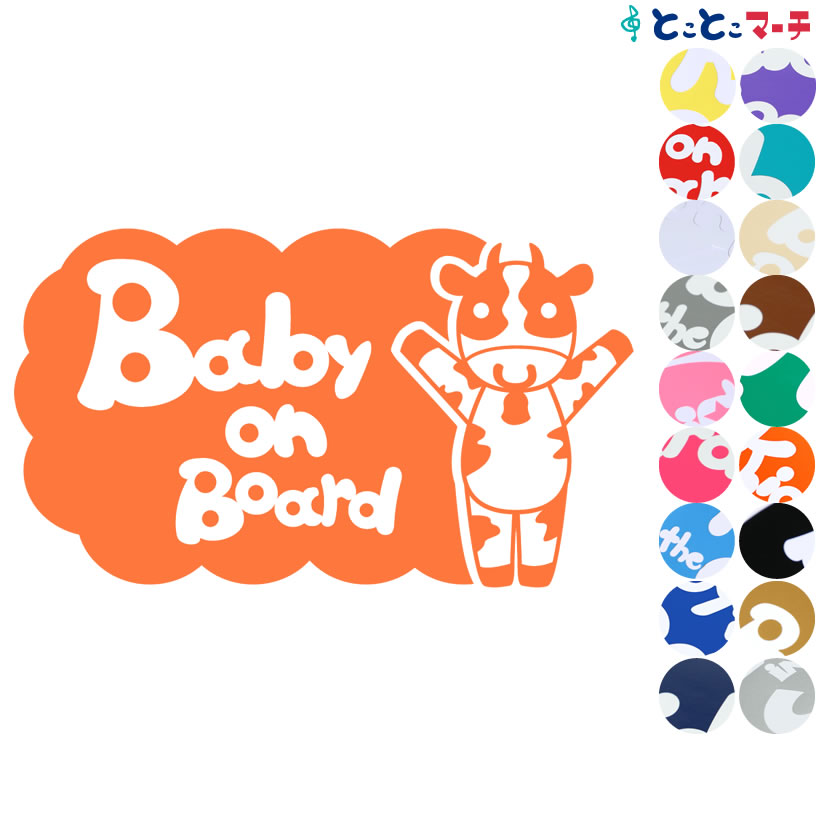Baby on board 牛 うし ウシ 丑 バンザイ 体操 可愛い 干支 動物 ステッカーorマグネットが選べる 車
