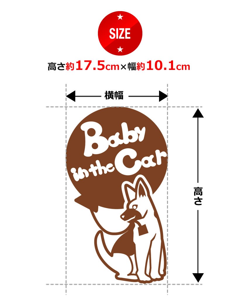 Baby in the car犬 シェパード-風船戌 干支 動物 ステッカーorマグネットが選べる 車 子供が乗っています