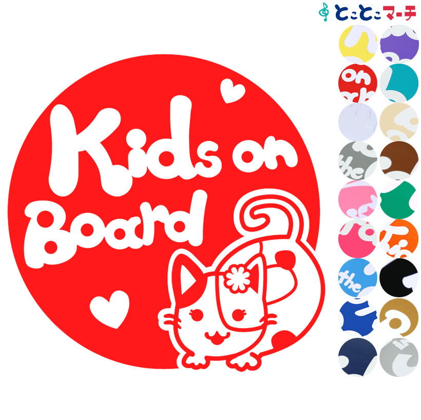 Kids on board ネコ ミケ 女の子 花 ハート 動物 ステッカーorマグネットが選べる 車 子供が乗っています キッズ