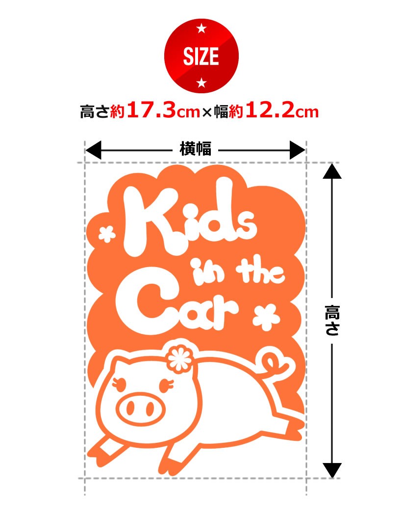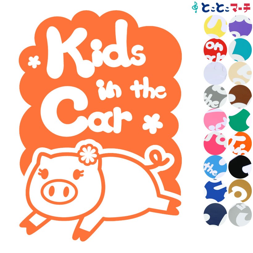 Kids in the car ブタ 縦 花 動物 ステッカーorマグネットが選べる 車 子供が乗っています ベビー イン ザ カー