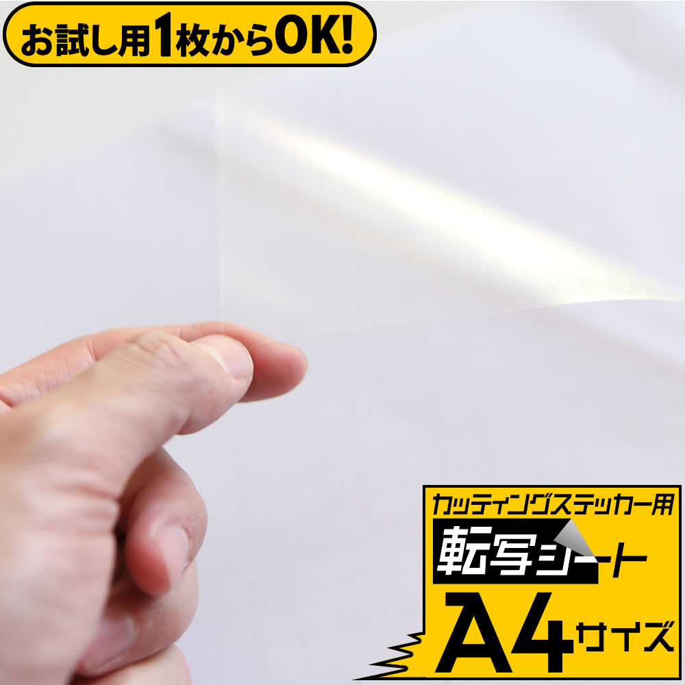 ●長時間貼り付けたステッカーをはがした際に、日焼けあと、のり残りが生じる場合がありますが、当社では一切の責任を負いかねます。予めご了承ください。●施工時、施工後、貼りはがしの際に発生する施工物への日焼けあと、のり残り、破損等につきましては当社では一切の責任を負いかねます。▲■▲予めご了承ください。オリジナルステッカーが簡単に作れる、カッティング用シートとこの転写フィルムさえあれば、ステッカーが自由に作れる。素材が薄いため、細かい文字や曲面がある図も作業がしやすいのが特徴です。 市販のカッティングマシン・カッティングブロッターを使用することができます。