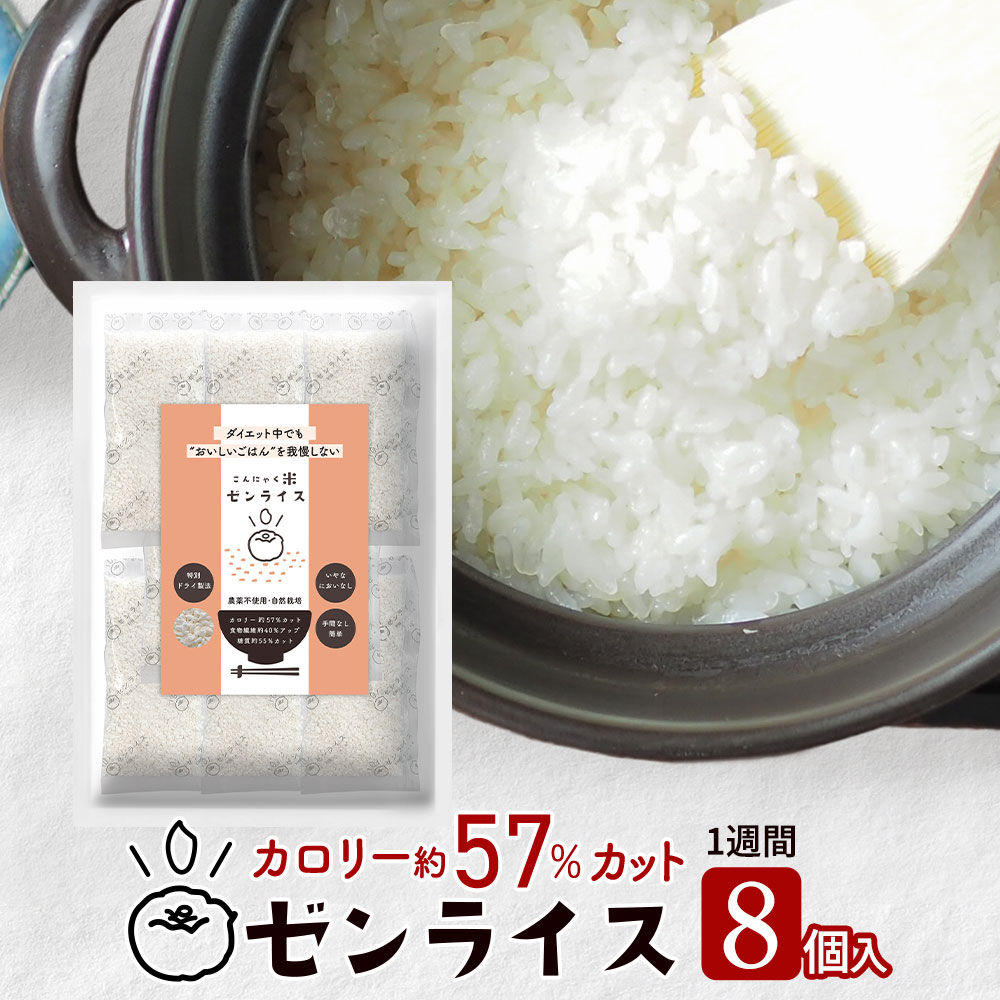 こんにゃく米 ゼンライス 乾燥 カロリー57%カット 8袋 冷凍可 乾燥こんにゃく米 糖質制限 糖質オフ こんにゃくごはん ダイエット 米 無農薬 簡単 カロリーオフ