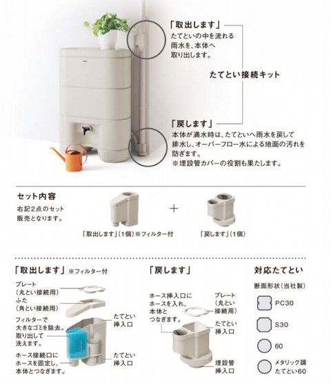 ※本商品で貯めた雨水を、絶対に飲み水や料理などに使わないでください。食中毒などのおそれがあります。