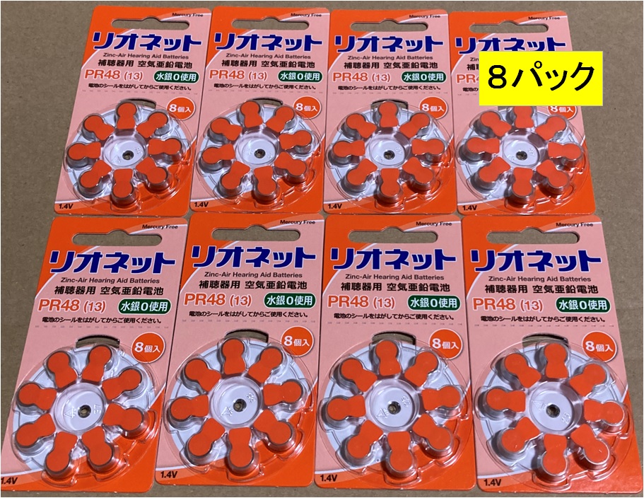 補聴器用 電池 リオン社の リオネット PR48 8パック (64個)
