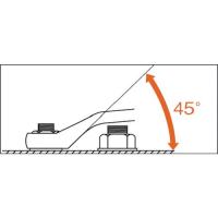 ●柄部の曲がり角度が45°で全長が短いため、狭い箇所で周辺の障害物を避けて作業ができます。