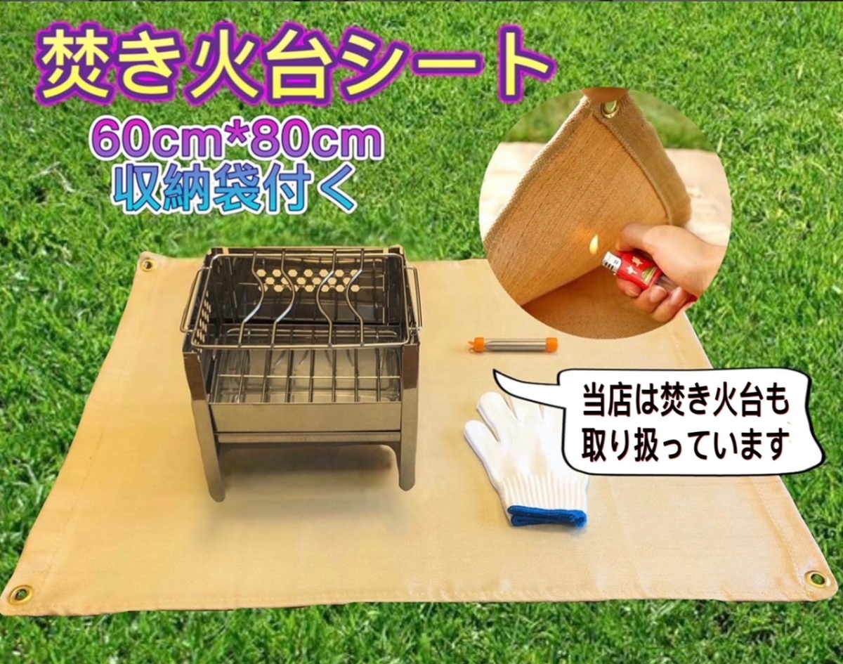 (2)安心の厚手0.8mmグラスファイバー製で耐熱温度約550度!焚き火の温度は250度〜450度なので安心ですね。焚き火やバーベキュー、アルコールストーブ、ウッドストーブなど様々なアウトドアシーンでご利用いただけます。