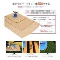 (3)熱を通しにくいファイバーグラス素材を使用しているので、 焚き火台や薪ストーブ・BBQコンロ使用時等の熱源から伝わる輻射熱や、飛び散る火の粉を遮るので、延焼事故の防止に役立ちます。