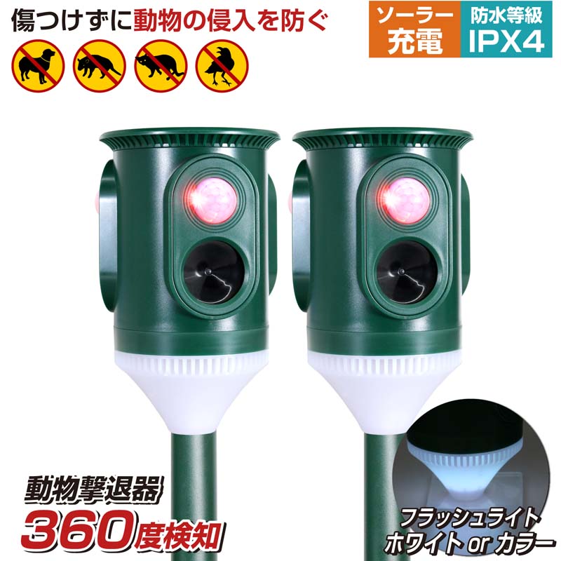 2台セット 猫よけ 360度 猫よけ対策 最強 庭 駐車場 撃退 イノシシ ハクビシン 害獣 超音波 カラス 犬 野良猫 音声 フラッシュ ソーラー充電 USB
