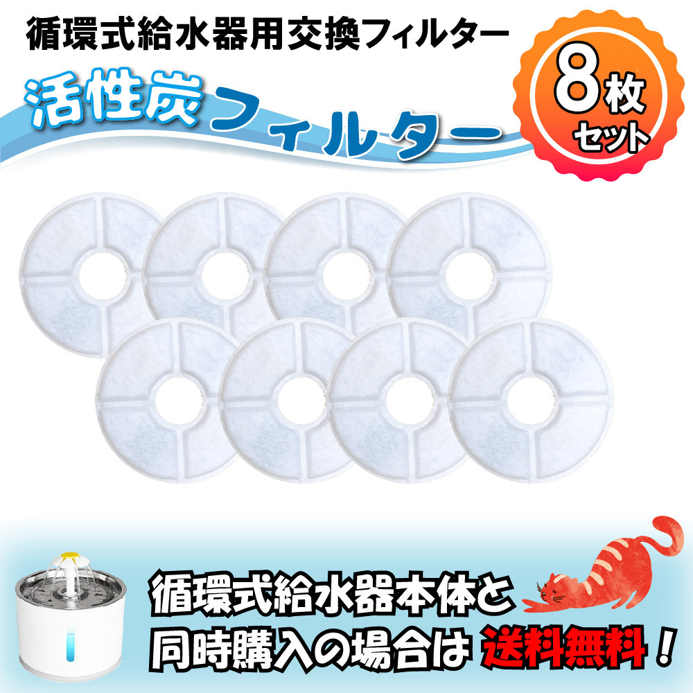 | ■ベストアンサー ウォーターファウンテン pet-030 給水器 交換用フィルター 4枚×2セット ベストアンサー製ウォーターファウンテン(自動給水器) 交換用フィルターです。 使用前に、軽く水洗いしてからご使用ください。 活性炭の微塵が付着していることがあります。 水質保持のため、定期的にフィルターの清掃、交換を 行ってください。目安は約1カ月前後です。 このほかに、目に見えて汚れがひどい時なども 清掃、および交換をおすすめします。 商品サイズ:直径約12.6cm 厚み約1cm 間の穴約3.5cm