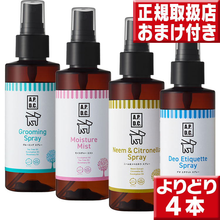 APDCデオドラントスプレー・グルーミングスプレー・ニーム&シトロネラスプレー・モイスチャーミスト・クールミストからご自由に4本お選びください