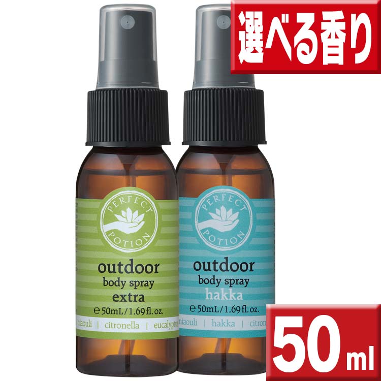 商品情報【ディート】は未使用小さなお子様、敏感肌の人もOK♪赤ちゃんには生後6ヶ月以降からお使い下さい。パーフェクトポーション アウトドアボディスプレー内容量:50ml、2種類の香りからお選び下さい♪