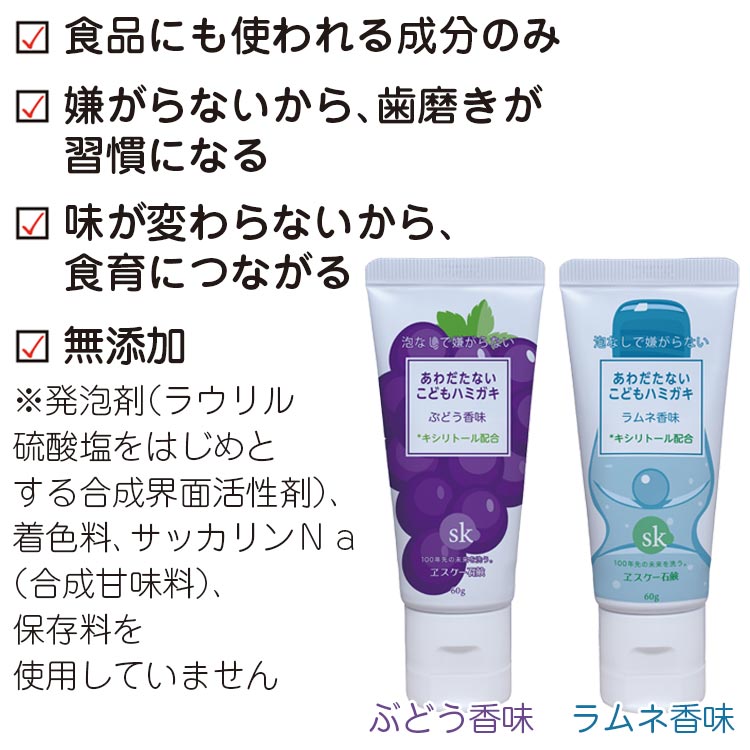 名称 エスケー石鹸 あわだたないこどもハミガキ ぶどう香味