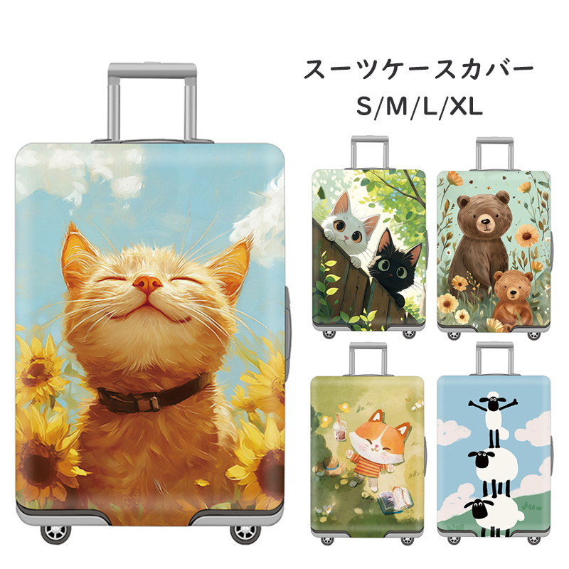 スーツケースカバー キャリーバッグケースカバー ラゲッジカバー トランク伸縮保護カバー 汚れ防止 傷防止 盗難防止 旅行用品 視認性抜群 伸縮素材 便利グッズ