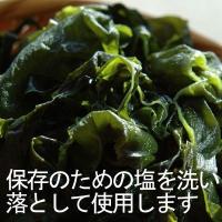 | 採れたての生わかめを湯通しし、保存のため食塩をまぶしたものです。乾燥させていない生わかめですので、賞味期限が1ヶ月〜3ヶ月と短めですが、水で戻す必要が無く水洗いで塩を落としてすぐ使える便利さがあります。最も生に近い状態ですので、栄養、うまみも沢山含まれます。 塩が完全に抜けきらない場合がありますので味噌汁など、調理の時は味見をしながら調整してください。 |