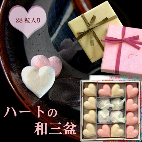 | 本品は和三盆糖をハート型に型押しした干菓子です。約9センチほどの正方形の小さな小箱に2段重ねでハートが28粒(うち包み落雁4つ)が入っています!可愛らしい本品は、ブライダルのプチギフトやバレンタインデー、ホワイトデーの他、各種イベントに大人気の逸品です♪ 阿讃山脈の麓で栽培される良質のサトウキビを原料とした、江戸時代より伝わる徳島伝統の高級砂糖で作られた本品は、普通の砂糖菓子とは一味も二味も違った、高級プチギフトです。 用途/分類 | 阿波・徳島特産品/名産品/和菓子/和三盆糖/干菓子/落雁/らくがん/高級砂糖/さとうきび/サトウキビ/お茶菓子/お茶請け | ギフト/プレゼント/御進物/徳島の御土産(お土産・おみやげ)/贈り物/粗品/記念品/贈答品/御祝/お祝/内祝/御礼/お礼/寿/引出物/バレンタインデー/ホワイトデー/クリスマスプレゼント/プチギフト/ |