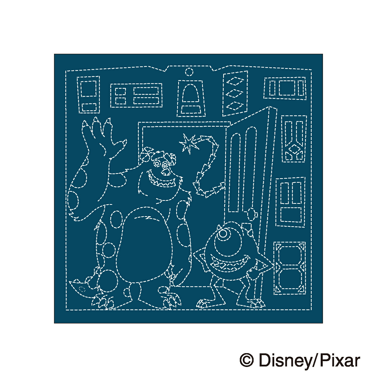 オリムパス 刺し子 sashiko 花ふきん 花ふきん布パック ディズニー ピクサー H-2131 サリー&マイク 藍 水で消える図案入り