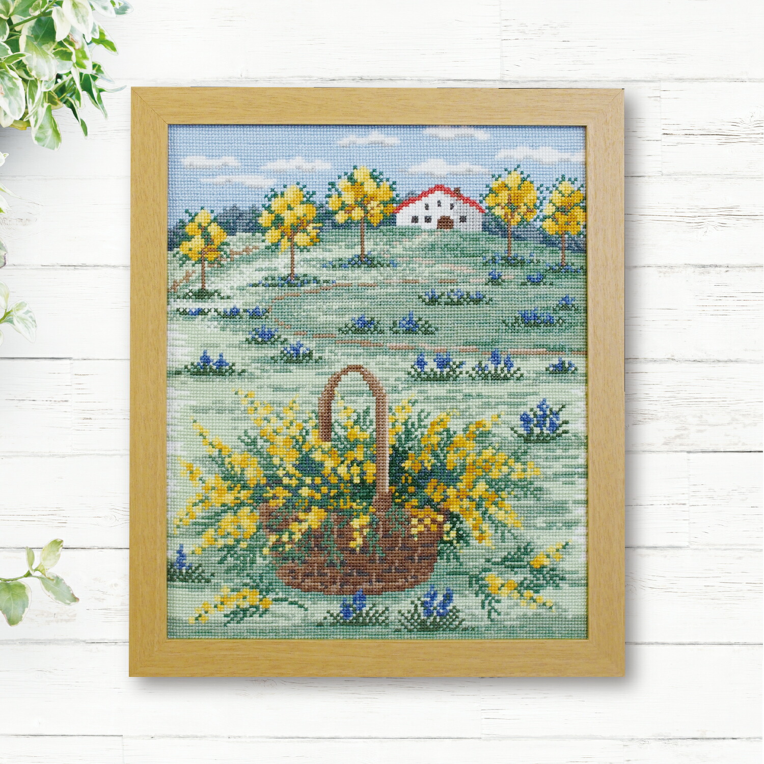 オリムパス 刺しゅうキット クロスステッチ キット オノエメグミ ミモザ色のフランス早春の丘 7576