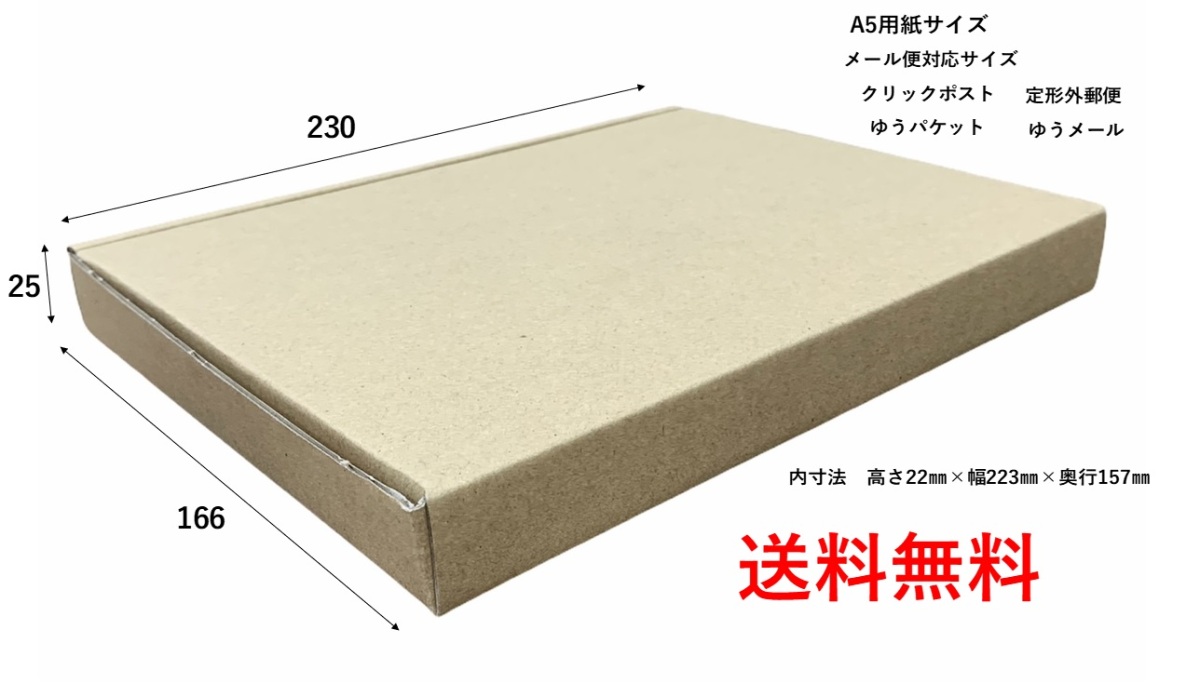 A5 厚さ2.5cm ゆうパケット60サイズ ダンボール箱 5枚セット f-275