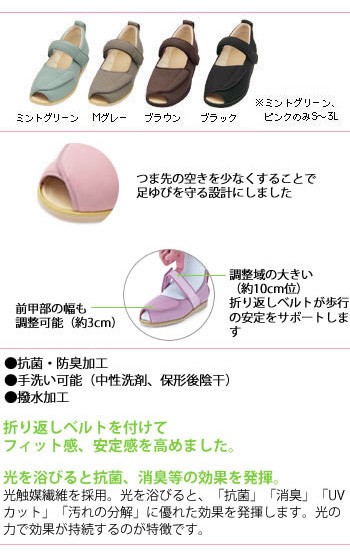 介護シューズ ケアシューズ リハビリシューズつま先が全開、2つのベルトが履き心地を安定させます