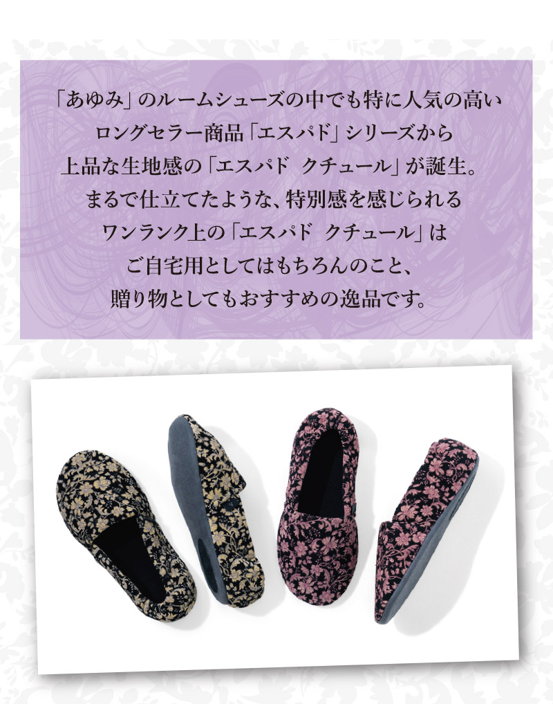 あゆみシューズ公式 エスパドクチュール 片足販売 右足のみ 2240 室内用 軽量 脱げにくい 履きやすい オールシーズン