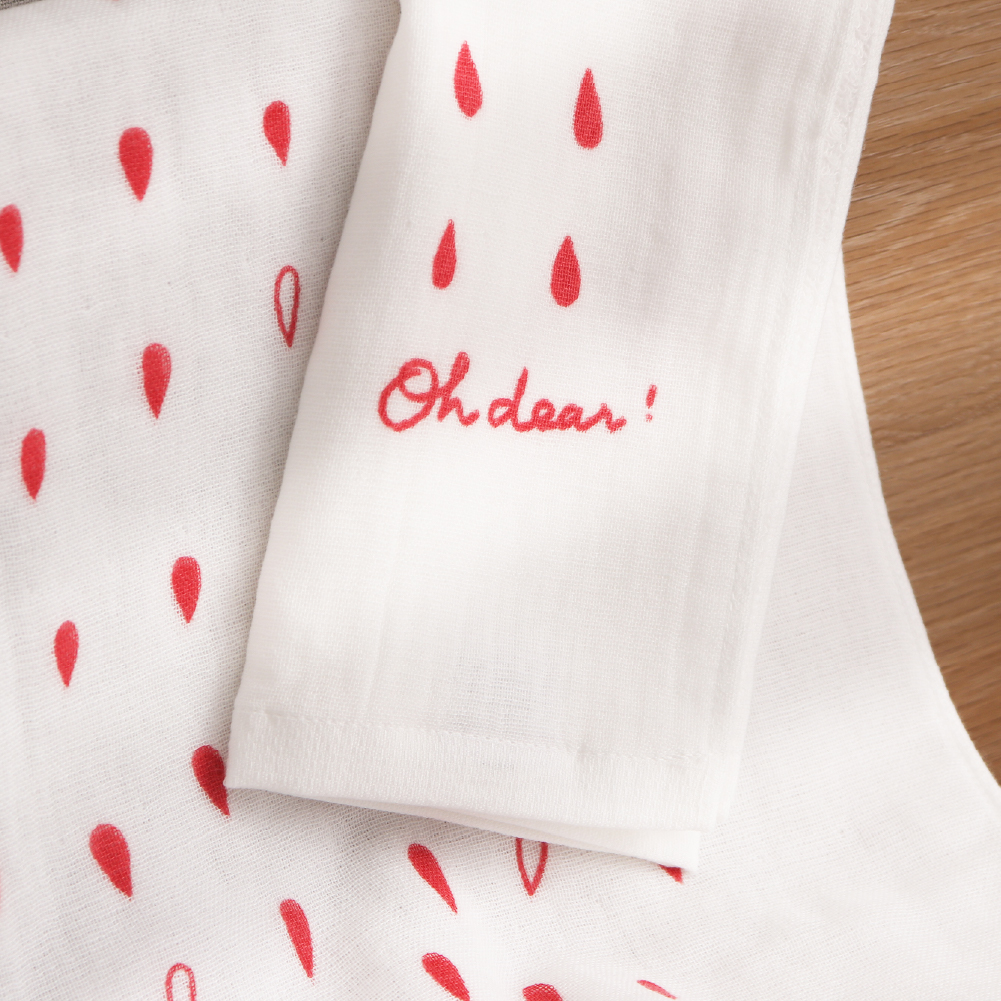 ・ガーゼやタオルを振り回したり、強くはたくと引き裂ける可能性がございます。特に縫製部分は引き裂けやすいので、ご注意ください。