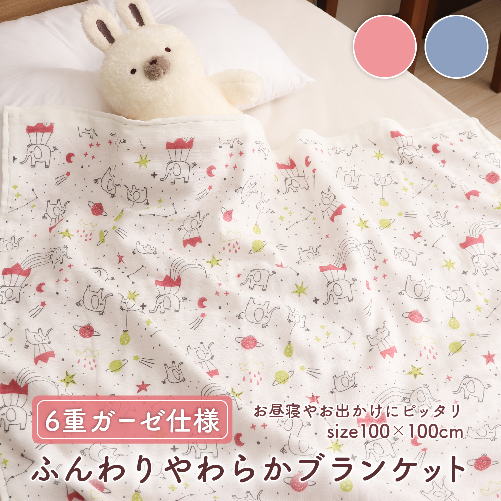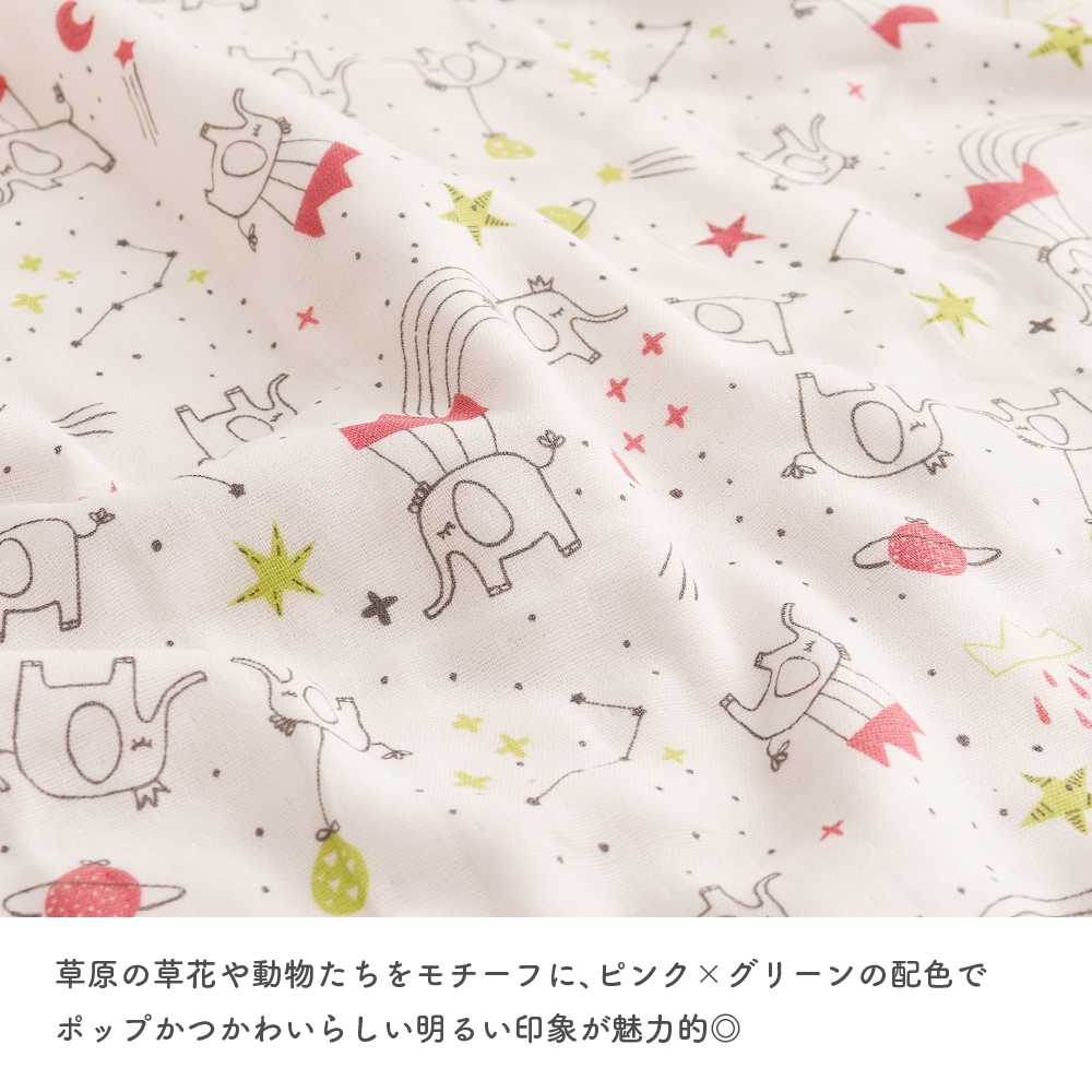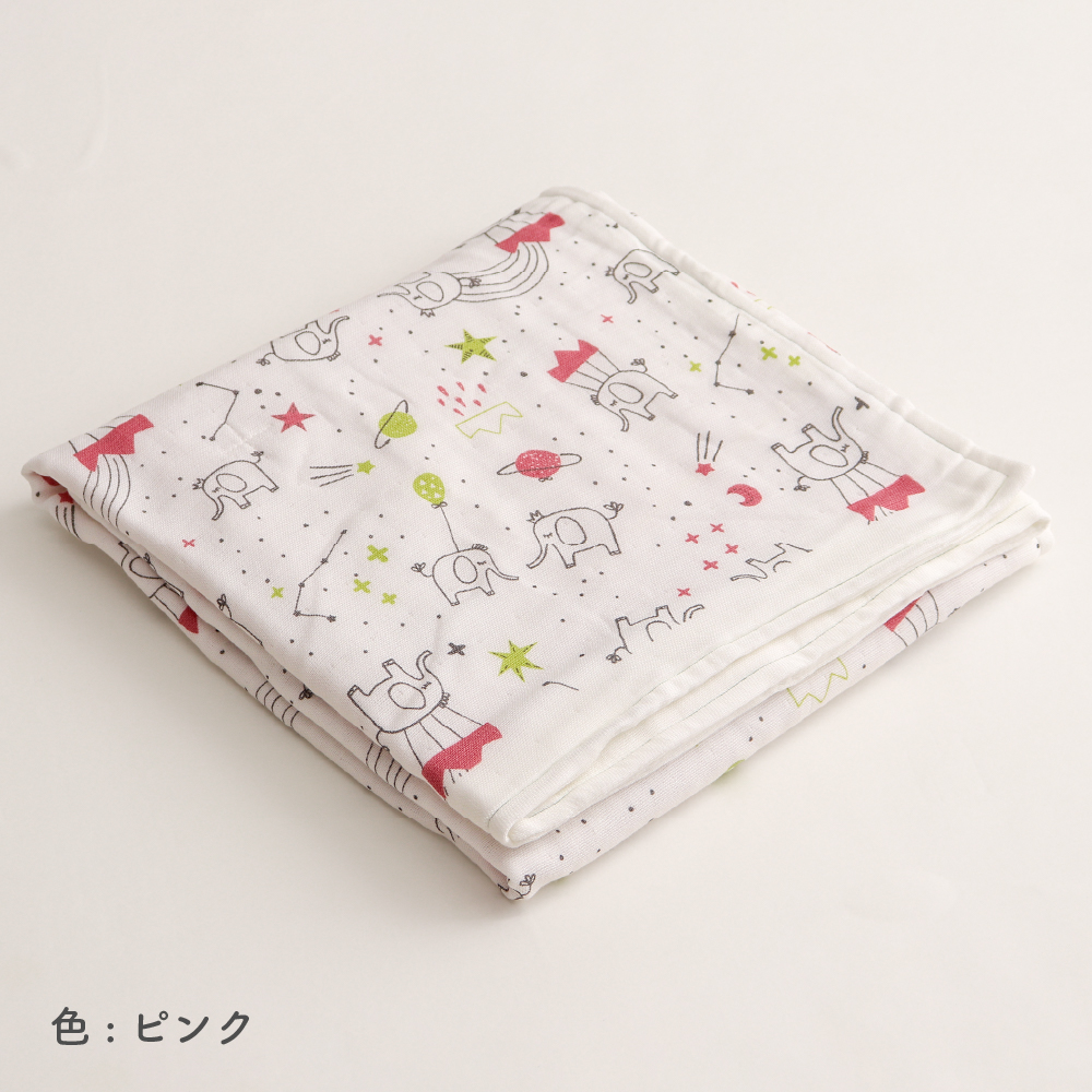 可愛いエレファント柄の6重ガーゼブランケットです。