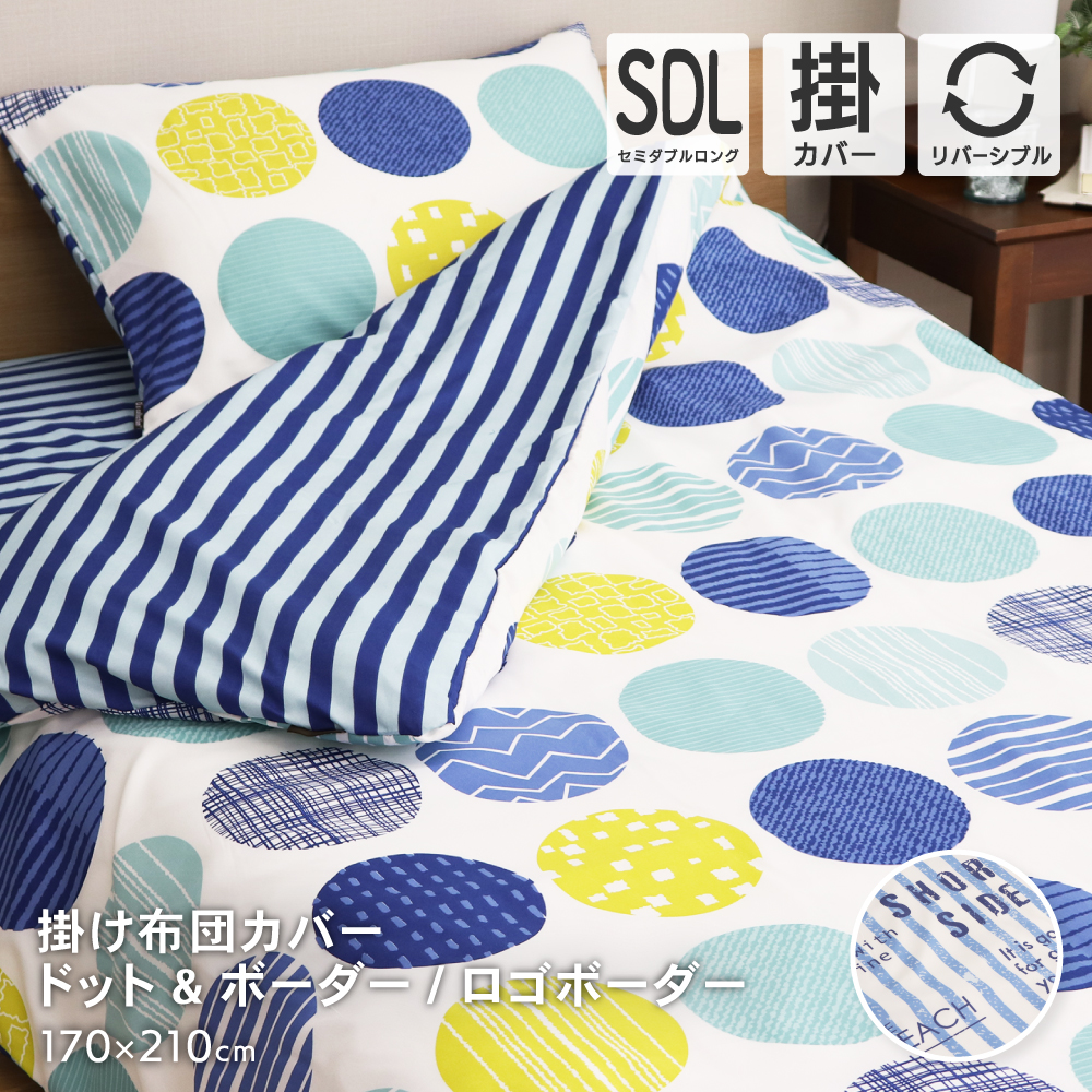 掛け布団カバー セミダブルロングサイズ 約170×210cm ドット&ボーダー柄 ロゴボーダー柄 掛布団カバー P-YMD17170 D's collection
