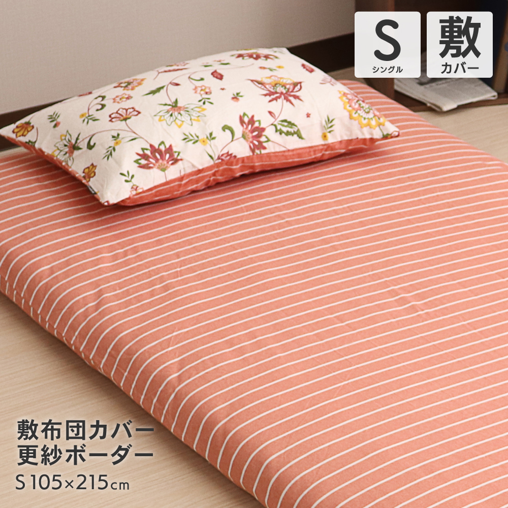 可愛いピンクのボーダー柄の敷き布団カバー。オシャレにお部屋を演出してくれます。